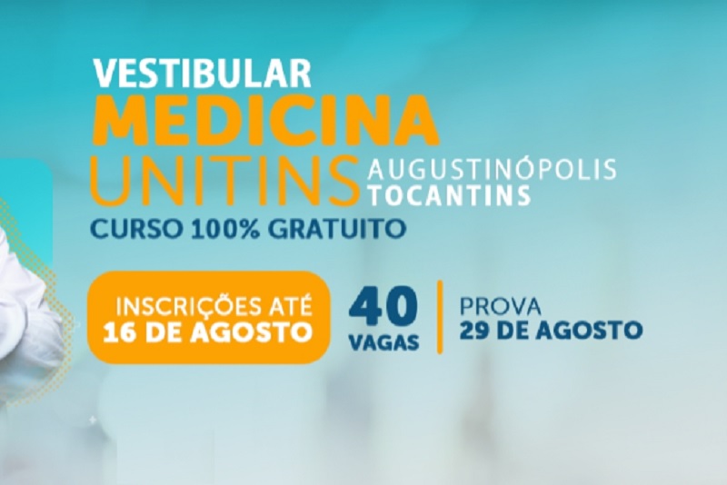A Universidade Estadual do Tocantins (UNITINS), lançou Edital para realização do Vestibular 2021, do curso de Medicina, no campus de Augustinópolis, no Bico do Papagaio. As inscrições começam nesta sexta, dia 6 e segue até dia 16 de agosto.