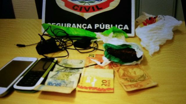 Os agentes aguardaram enquanto o menor infrator se afastava, o abordaram e efetuaram a detenção do mesmo. Durante a revista, os Policiais Civis encontraram em poder dele, aproximadamente 100 gramas de maconha que, segundo apontaram às investigações da PC, seriam repassadas pelo adolescente ao namorado de Andressa que se encontra preso na Cadeia Pública da cidade. Na ação, também foram apreendidos R$72,00.