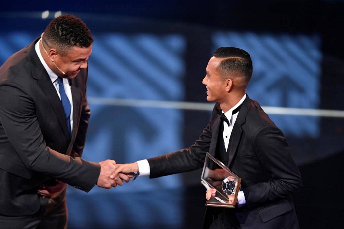 Malaio Mohd Faiz Subri recebendo o prêmio de Ronaldo