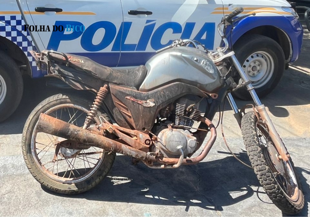 Ao chegar ao local indicado, os policiais encontraram uma motocicleta Honda/CG 150 FAN ESDI sem placa de identificação. Durante a vistoria, foi constatado que as numerações do chassi e do motor estavam raspadas, evidenciando adulteração dos sinais identificadores do veículo.