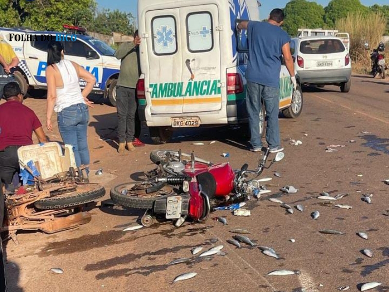 Não houve ferimentos graves. Uma ambulância foi chamada para dar atendimento aos envolvidos. Uma das motocicletas estava carregada com peixes e teve a carga espalhada pela via.
