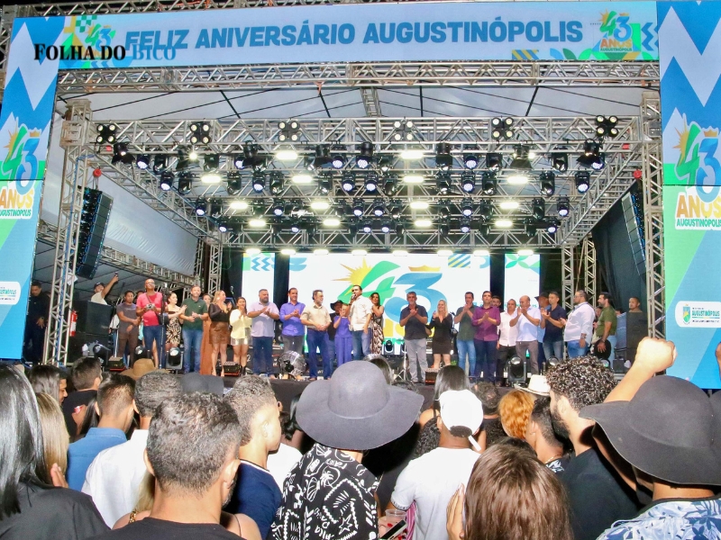 O município de Augustinópolis, no Bico do Papagaio, comemorou nesta quarta-feira, 14, seus 43 anos de emancipação política com uma programação festiva que reuniu milhares de pessoas na Praça Ary Valadão Filho. A celebração contou com a presença do governador do Tocantins, Wanderlei Barbosa, e da primeira-dama e secretária extraordinária de Participações Sociais, Karynne Sotero, além de autoridades locais e estaduais. Shows com os artistas Felipe & Matheus, Mateuzinho Lima e FK10 marcaram a noite de comemoração.
