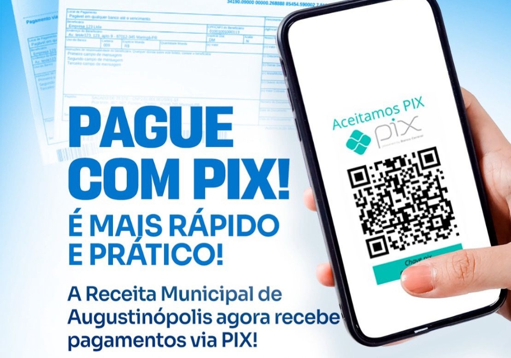 A Prefeitura de Augustinópolis acaba de tornar o pagamento de tributos municipais ainda mais simples e rápido. Agora, a Receita Municipal aceita pagamentos via PIX, oferecendo mais praticidade para o cidadão augustinopolino quitar suas obrigações com o município.