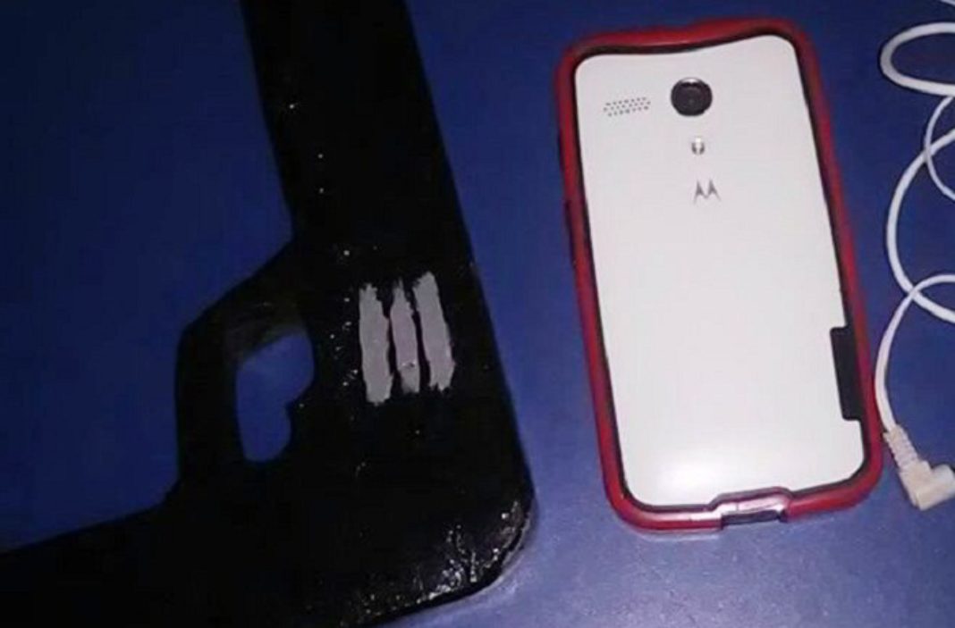 De acordo com a vítima, eles usavam uma arma quando anunciaram o assalto. Durante diligências a PM localizou os menores portando o celular da vítima. A arma simulacro, de brinquedo, estava na cintura do adolescente. Eles foram conduzidos juntamente com os objetos à Delegacia de Polícia para as providências.