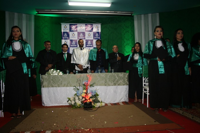 A formatura de Direito aconteceu nessa quinta-feira, 9, e participaram da solenidade o coordenador do curso, professor Irineu Vagner Junior Valoeis, o patrono da turma, professor Phyllypy Dyno Silva de Oliveira, e o paraninfo Marcos Vinícius Lira Eloi.