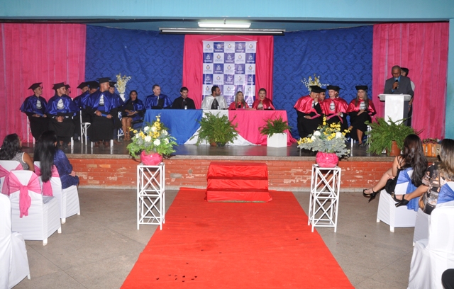 A solenidade de Enfermagem, realizada na noite de sábado, 11, contou com as presenças da coordenadora do curso, professora Hanari dos Santos Almeida, do paraninfo da turma, deputado estadual Amélio Cayres de Almeida, e do patrono, deputado estadual Rocha Miranda.