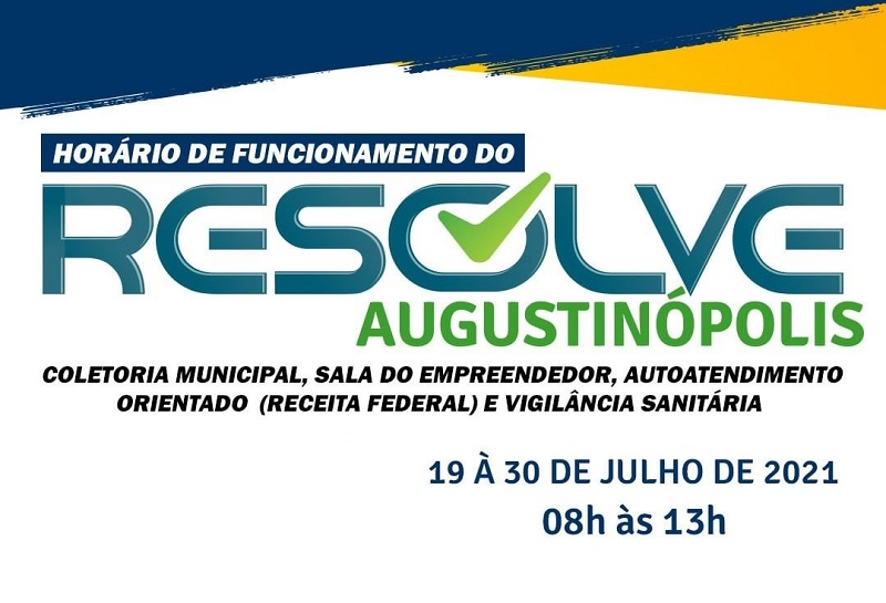 O “Resolve Augustinópolis” passou a funcionar em novo horário nesta segunda, 19. Até o dia 30 de julho, o órgão que junta em um só lugar, vários serviços, atenderá das 8h às 14h.