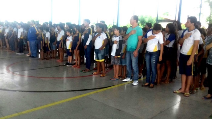 Ao comando do capitão Rondinele, houve o hasteamento das bandeiras e cântico do Hino Nacional. O diretor da escola, professor Hélio da Silva Oliveira, agradeceu a parceria com a Polícia Militar e ressaltou a importância da presença da instituição militar, com seu trabalho proativo nas escolas da cidade.