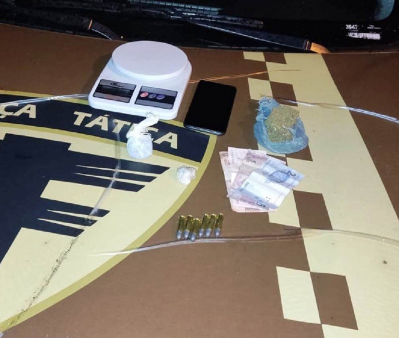 Em poder dos indivíduos a PM apreendeu nove gramas de substância análoga ao crack e um aparelho celular. No interior da casa de um dos suspeitos também foram encontrados 50 gramas de maconha, seis munições intactas de calibre 38, uma quantia de R$ 27,00 reais em espécie e uma balança de precisão.
