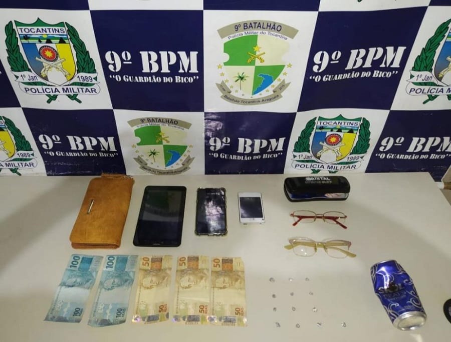 A equipe policial capturou o primeiro autor e de posse de informações chegou ao traficante de 43 anos, onde através de busca domiciliar encontrou com este 13 papelotes de crack, a quantia de R$ 350 reais em espécie, dois aparelhos celulares, uma bolsa feminina, um tablete e dois óculos de grau, os autores e todo o material apreendidos foram apresentados na Delegacia de Polícia em Araguatins.
