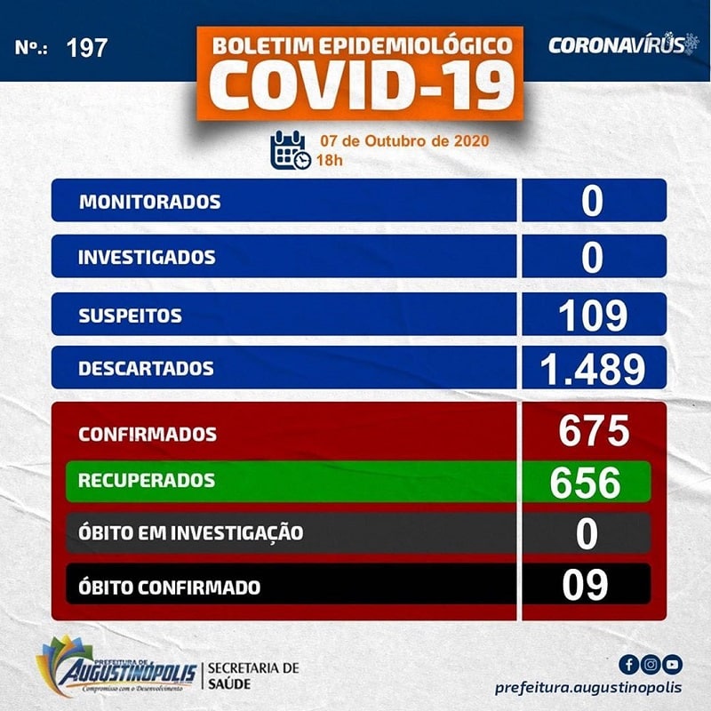 Publicidade Publicidade Bico do Papagaio AUGUSTINÓPOLIS: Veja os números da Covid-19 desta quarta, 7 By Folha do Bico 7 de outubro de 2020 0 704 Share WhatsAppPrintTelegramFacebookTwitterCopy URL Folha do Bico Noticias Relacionadas AUGUSTINÓPOLIS: Comunidade celebra a chegada do período natalino com cores, música e emoção 5 de dezembro de 2025 Naturatins combina educação e fiscalização para preservar espécies durante a piracema no Bico 4 de dezembro de 2025 ARAGUATINS: Discussão por serviço de roçagem termina em ameaça com garrucha e detenção 4 de dezembro de 2025 Share WhatsAppPrintTelegramFacebookTwitterCopy URL Previous articleARAGUAÍNA: Sebrae realiza Semana Tecnológica durante Expoara DigitalNext articleARAGUATINS: Veja os números da Covid-19 desta quarta, 7 - Advertisement - - Advertisement - Ultimas noticias Para Nunes Marques, afastamento de Wanderlei era excessivo e violava estabilidade institucional 5 de dezembro de 2025 STF derruba afastamento de Wanderlei Barbosa e governador reassume mandato 5 de dezembro de 2025 AUGUSTINÓPOLIS: Acender das Luzes celebra 4ª edição da Magia do Natal com espetáculo especial nesta sexta-feira 5 de dezembro de 2025 44 mil famílias sem casa. Enquanto isso, a política do Tocantins segue repetindo promessas que nunca saem do papel 5 de dezembro de 2025