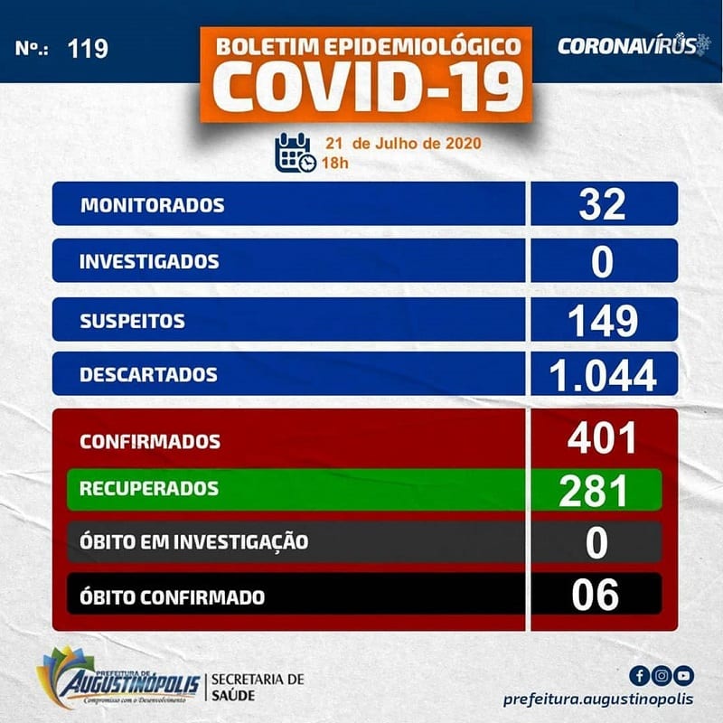 Publicidade Publicidade Bico do Papagaio AUGUSTINÓPOLIS: Veja os números da Covid-19 desta terça, 21 By Folha do Bico 21 de julho de 2020 0 581 Share WhatsAppPrintTelegramFacebookTwitterCopy URL Folha do Bico Noticias Relacionadas PRAIA NORTE: Diárias pagas a Ho Che Min superam gastos com viagens da prefeita 19 de janeiro de 2026 ANANÁS: Gestante consegue escapar de agressões e denuncia companheiro 19 de janeiro de 2026 CACHOEIRINHA: Três mortes em sequência de acidentes na Transamazônica 19 de janeiro de 2026 Share WhatsAppPrintTelegramFacebookTwitterCopy URL Previous articleARAGUATINS: Veja os números da Covid-19 desta terça, 21Next articleMARABÁ: Pavimentação asfáltica chega na Folha 29 - Advertisement - - Advertisement - Ultimas noticias LUZINÓPOLIS: Wiston Gomes fortalece esporte de base ao apoiar copa de futsal 20 de janeiro de 2026 Jairo Nascimento é confirmado como novo técnico do Tocantinópolis EC 20 de janeiro de 2026 PARAUAPEBAS: Jornada Pedagógica 2026 abre ano letivo com foco em inclusão e era digital 20 de janeiro de 2026 PARAUAPEBAS: Recorde de participantes marca a 21ª edição da Corrida de São Sebastião 20 de janeiro de 2026 Amélio Cayres retoma articulações e ganha força na pré-campanha pelo Governo do Tocantins 19 de janeiro de 2026