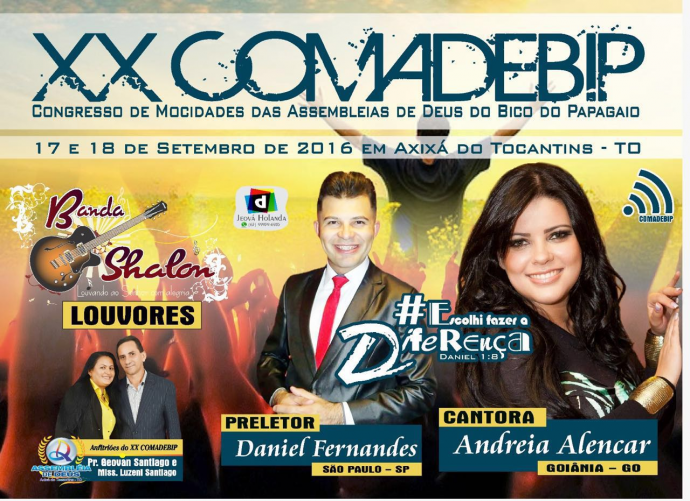 Com o tema: “Eu Escolhi Fazer a Diferença”, inicia no próximo sábado, 17, em Axixá do Tocantins, o 20º Congresso de Mocidade do Bico do Papagaio (COMADEBIP) com a participação de 25 igrejas presentes em 12 cidades da região. O casal de pastores Geovan Santiago e missionária Luzenir Santiago são os anfitriões da festividade.