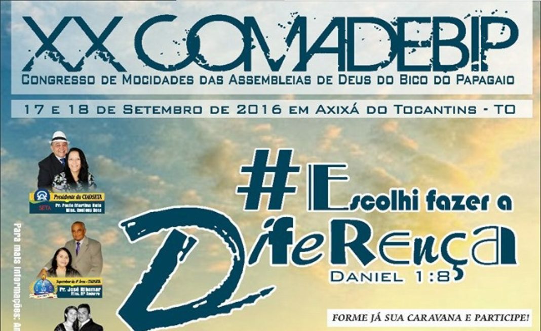 O Congresso de Mocidades das Assembleias de Deus do Bico do Papagaio (Comadebip), pertencente a Convenção da Ciadseta, acontecerá na cidade de Axixá do Tocantins. O casal, pastor Geovan Santiago e missionária Luzeni Santiago são os anfitriões.