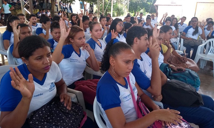Estudantes e servidores do Colégio Estadual Marechal Ribas Júnior, em Axixá do Tocantins, norte do Estado, participam nesta sexta-feira, 6, de um evento com o tema Diálogo Religioso e prevenção ao uso de drogas e suas consequências. A ação ocorreu no período matutino e segue à tarde no pátio da unidade; e conta com a participação do padre Gilvan Estevão Sousa e do grupo Hip-hop Filhos do Rei, de Imperatriz (MA).