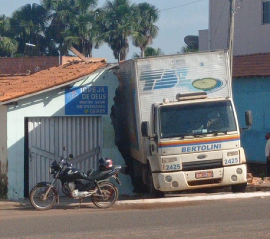 Um caminhão bateu contra uma igreja na avenida Elza Leal, no centro de Axixá, no Bico do Papagaio, na manhã desta terça, 22.