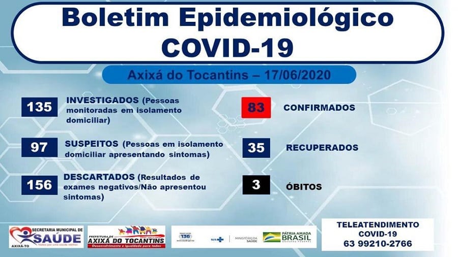 Com esta confirmação, esta é a quarta morte oficializada no Bico do Papagaio, nesta quarta. Além da morte em Axixá, houveram confirmações em Araguatins, Aguiarnópolis e São Miguel.