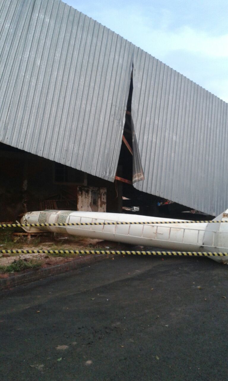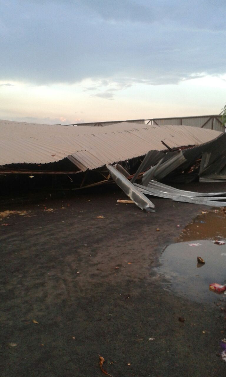 Parte do teto da Feira Coberta de Axixá do Tocantins, desabou no final da tarde deste sábado, 18, por causa de uma forte ventania, que iniciou por volta das 17h. Ninguém ficou ferido com o acidente, apenas uma motocicleta foi atingida, causando danos materiais.