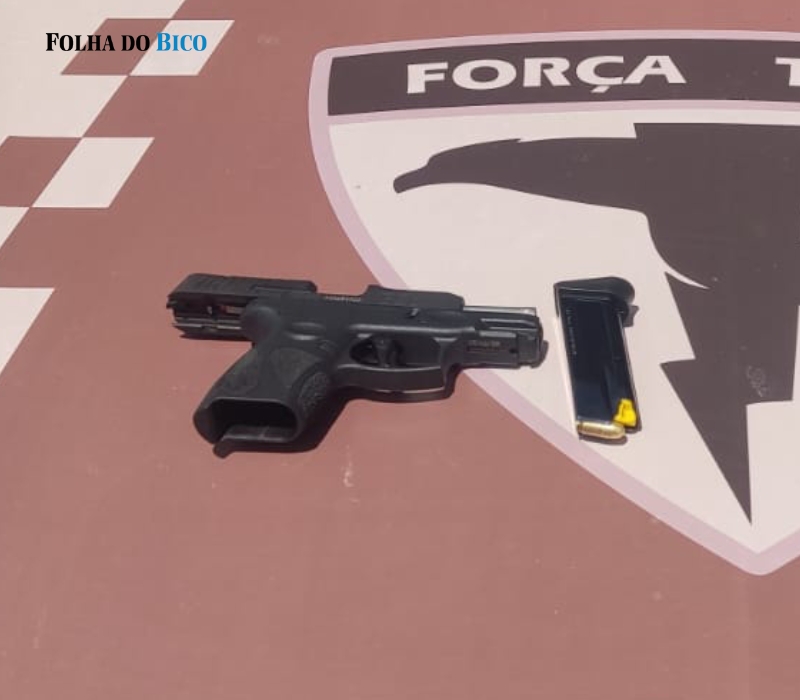 No sábado, 25, a Polícia Militar prendeu dois indivíduos e apreendeu uma armas de fogo de uso permitido, sendo uma pistola da marca Taurus, modelo G2C, calibre 9mm com 01 munição intacta.