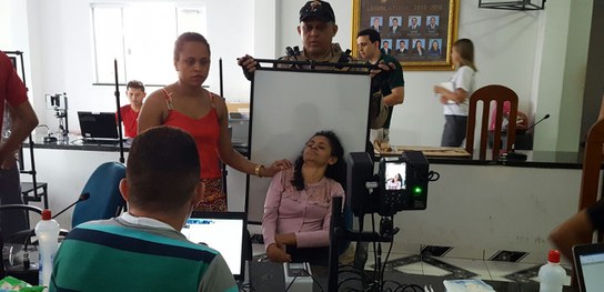 Francinalva Rodrigues dos Santos, com a ajuda de uma amiga e da Polícia Militar de Axixá compareceu à Câmara Municipal da cidade para exercer o seu papel de cidadã. “Eu vim porque queria estar atualizada, com meus documentos em dia, assim como todo cidadão e também não queria perder o benefício financeiro que recebo. Agora estou feliz com meu título novo”, disse Francinalva.