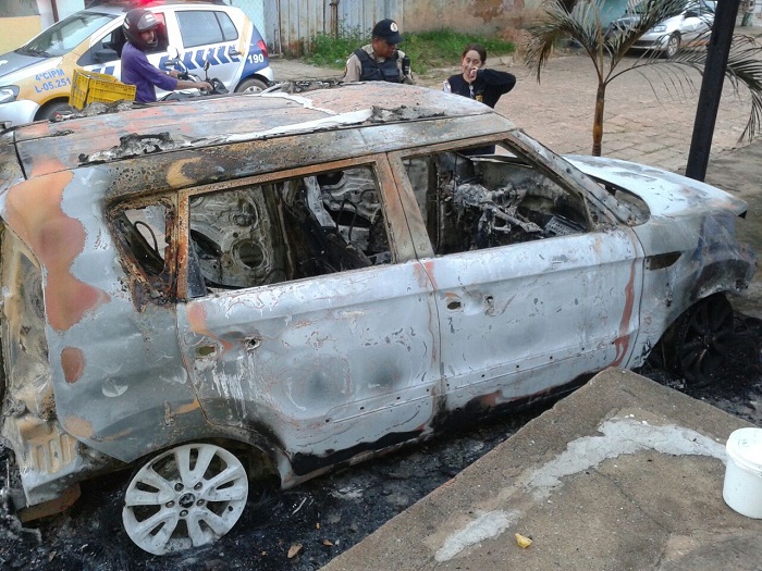 O incêndio criminoso foi por volta das 20h. Quando a PM chegou ao local o veículo se encontrava totalmente em chamas, não sendo possível colher os demais dados do carro. De acordo com informações repassadas por testemunhas que presenciaram o fato, o incêndio foi provocado pela a ex-esposa da vítima. A guarnição realizou diligência e conseguiu localizá-la. Ela confessou aos policiais militares ser a autora do incêndio alegando estar inconformada com a separação.