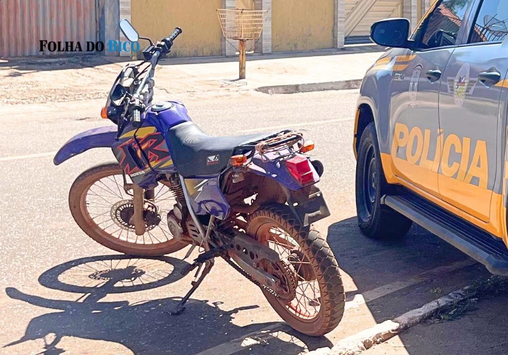 Uma motocicleta com registro de furto ou roubo foi localizada na manhã da última quinta-feira, 3, durante patrulhamento em Axixá do Tocantins. O veículo, uma Honda XR 200 de cor roxa, circulava sem placa de identificação pela Rua 13 de Maio, o que motivou a abordagem por parte da equipe de fiscalização atuante na região.