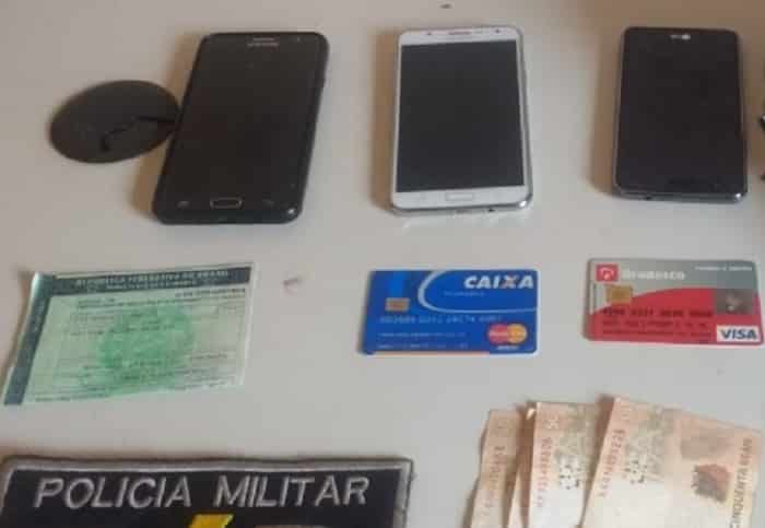 A PM acionou as cidades vizinhas onde foi deflagrada uma operação de cerco e bloqueio e conseguiu prender a dupla que fugia sentido à cidade de Sítio Novo. Dentro do carro dos autores os policiais militares apreenderam 03 aparelhos celulares, entre eles, o da vítima, 02 cartões bancários e R$ 230 reais em dinheiro.