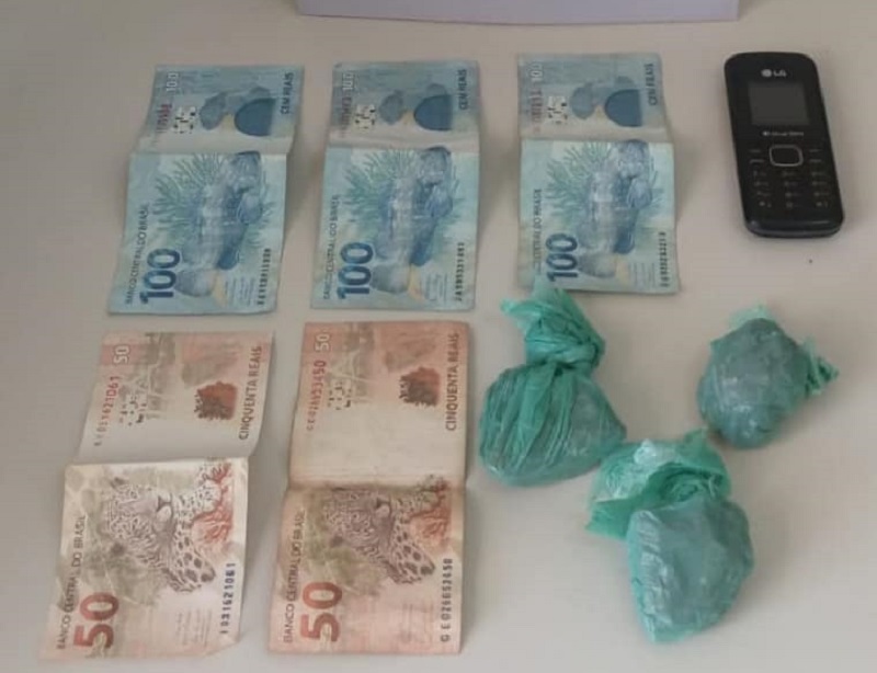 O veículo foi interceptado e o suspeito abordado pelos policiais, momento em que os militares localizaram alguns pacotes de substância análoga à maconha. A droga apreendida e o suspeito foram encaminhados à Delegacia de Polícia Civil para as providências legais cabíveis.