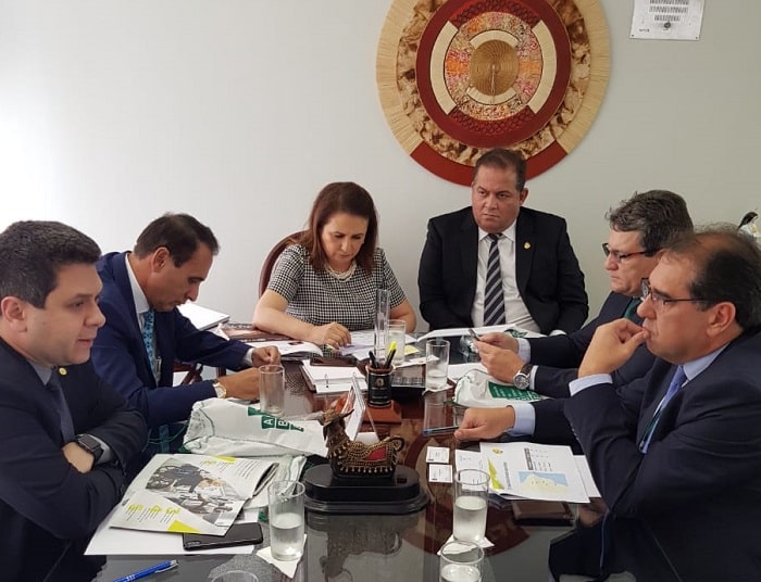 O deputado federal Tiago Dimas participou, nesta terça-feira, 26 de fevereiro, de reunião da bancada tocantinense com o diretor da Abear (Associação Brasileira das Empresas Aéreas), Airton Pereira. O encontrou foi realizado no gabinete da senadora Kátia Abreu (PDT), em Brasília. Além dela e de Tiago Dimas, participaram o senador Eduardo Gomes (MDB), e os deputados Carlos Gaguim (DEM), Osires Damaso (PSC) e Célio Moura (PT).