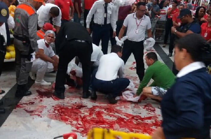 Testemunhas contam que o homem abriu uma embalagem de facas para churrasco e começou a gritar “adeus mundo” golpeando a si mesmo no pescoço e outras partes do corpo.