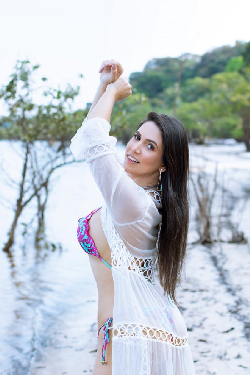 “Aqui tudo é diferenciado para mim. Por exemplo, aqui ainda não tem shopping e eu ia muito aos shoppings com minha família, mas agora meus passeios são mais ao ar livre, durante o dia. Em relação à moda, claro que ninguém anda pelado (risos), mas com pouca roupa sim, roupas bem leves e nada com muito brilho e tanta pompa, isso pelo fato dos passeios e lugares que frequentamos sejam diferentes”, explicou.