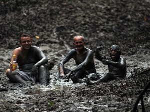 120219_para3Ao invés de cores e fantasias, os brincantes de Curuçá, no nordeste do Pará, surgem lambuzados de preto. Os personagens do tradiconal bloco carnavalesco Pretinhos do Mangue são tema da exposição fotográfica “Carnaval que vem do mangue”, em cartaz até 16 de março, na Estação das Docas, em Belém.