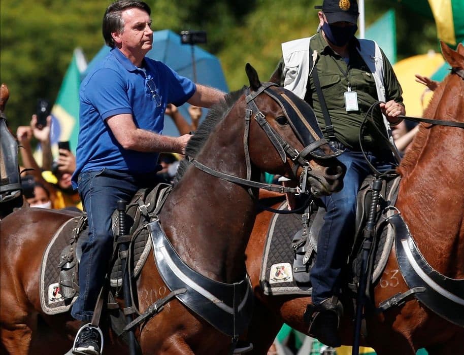 Após o pouso da aeronave, o presidente caminhou pela via em frente ao Palácio do Planalto e cumprimentou os apoiadores. Em um determinado momento, Bolsonaro montou em um cavalo da Polícia Militar do Distrito Federal, acenando para os apoiadores. Em seguida, retornou para o Palácio do Planalto, de onde embarcou novamente no helicóptero para retornar ao Palácio do Alvorada, residência oficial. O presidente e boa parte dos manifestantes não usavam máscara, obrigatória em locais públicos do DF. A multa pelo descumprimento da norma pode chegar a R$ 2 mil.