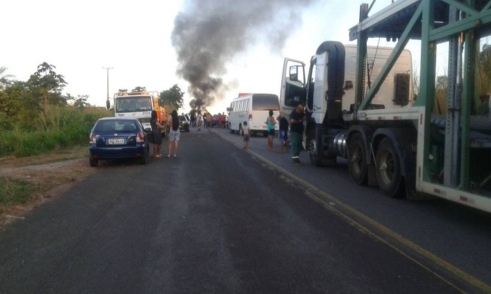 Os manifestantes utilizaram pedaços de madeira e pneus aos quais atearam fogo para interditar a via provocando um grande congestionamento.