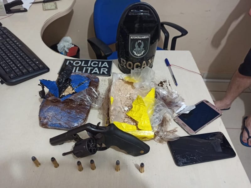 Equipes que atuam no 13° Batalhão de Polícia Militar, unidade que integra o Comando de Policiamento Regional IV (CPR IV), prenderam um casal suspeito de tráfico de drogas, no terminal rodoviário do município de Breu Branco, sudeste do Estado. A ação, que foi realizada na noite desta quarta-feira (2), resultou na apreensão de uma arma de fogo e de uma quantidade expressiva de entorpecentes.