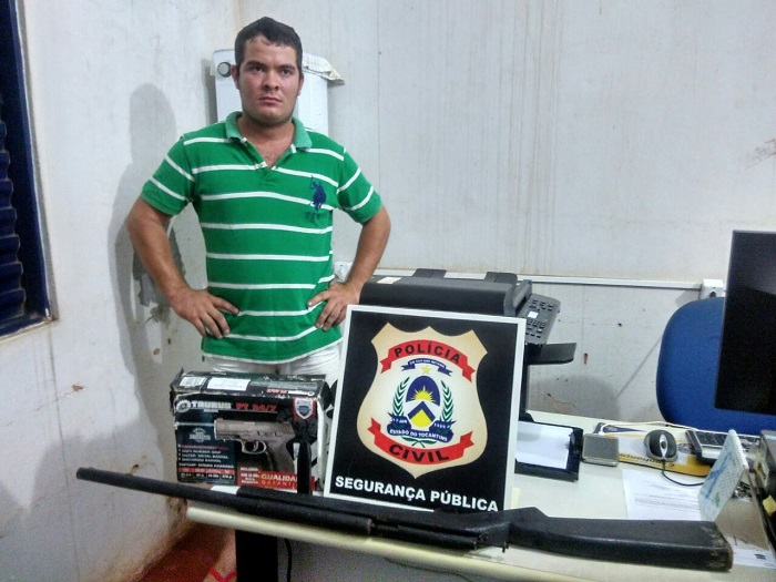 A Polícia Civil, por intermédio das Delegacias de Polícia de Buriti e Araguatins, efetuou na tarde desta quarta-feira, 8, a prisão em flagrante de Marcelo da Silva Porto, de 22 anos, por posse irregular de arma de fogo e um simulacro.