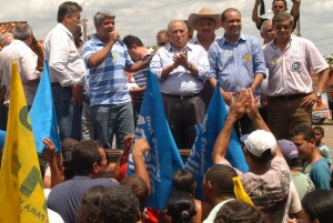 Após carreata que alegrou as ruas de Buriti do Tocantins, na manhã deste sábado, 28, o candidato ao governo do Estado pela coligação Tocantins Levado a Sério, Siqueira Campos (PSDB), juntamente aos candidatos ao Senado, João Ribeiro (PR) e Vicentinho Alves (PR), subiu em um caminhão para falar aos moradores da cidade.