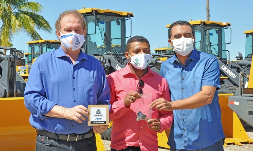 O prefeito de Cachoeirinha, Paulo Macedo, recebeu das mãos do governador, Mauro Carlesse, na manhã desta quinta-feira, 2, as chaves e os documentos de uma retroescavadeira e pá carregadeira.