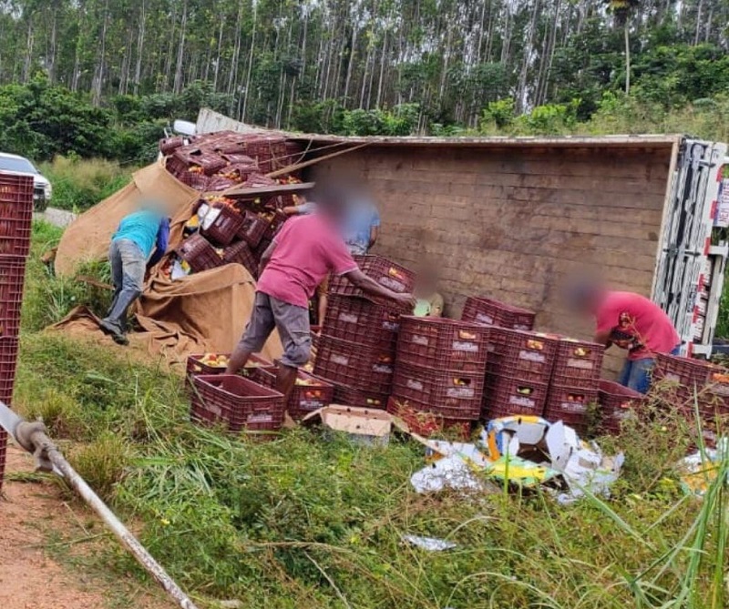 Um caminhão carregado de tomate tombou na madrugada desse domingo (08), na BR-010, entre Açailândia e Imperatriz, na entrada do povoado Vila Conceição.