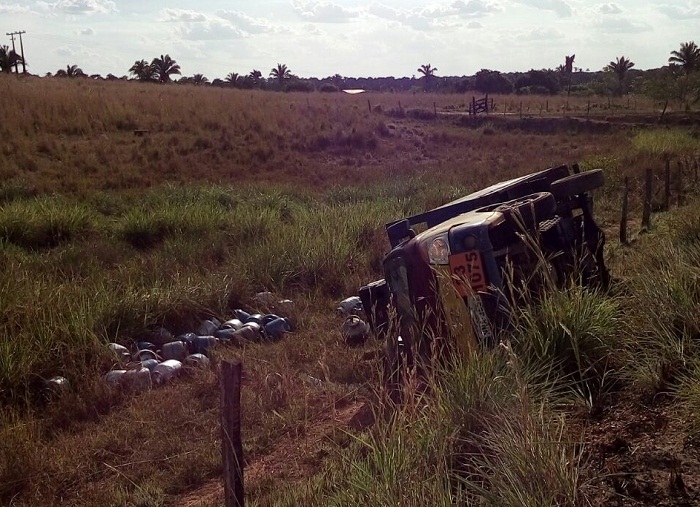 Um caminhão carregado de botijões de gás tombou na tarde desta quarta-feira, 10. O incidente ocorreu na rodovia TO-201, entre as cidades de Augustinópolis e Axixá do Tocantins.
