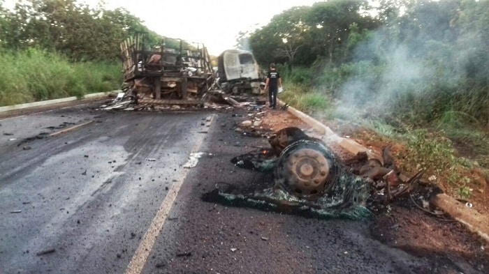 O acidente aconteceu por volta de 4h30, envolvendo um caminhão baú que estava vazio e um bitrem carregado de cerâmica. A PRF disse que o combustível dos dois veículos derramou na pista e que os órgãos ambientais foram chamados para analisar eventuais impactos.