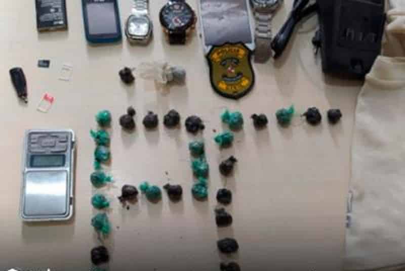 Na ação foram apreendidos 37 papelotes de maconha, 1 barra de maconha com 8.9 gramas, 1 papelote de Crack e uma balança de precisão.