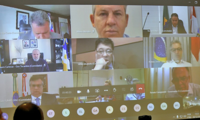Os governadores Wellington Dias (Piauí); Fátima Bezerra (Rio Grande do Norte); Paulo Câmara (Pernambuco); Gladson Cameli (Acre); Helder Barbalho (Pará); e Ronaldo Caiado (Goiás), participaram da reunião no próprio Palácio do Planalto. Já os demais participaram por videoconferência. (Vania Machado e Sara Cardoso)