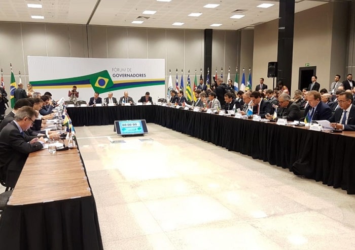 Durante toda a manhã e o início da tarde desta quarta-feira, 22 governadores estiveram reunidos em Brasília e ouviram apresentações do ministro-chefe da secretaria de Governo da Presidência da República, general Santos Cruz; do secretário especial de Previdência e Trabalho do Ministério da Economia, Rogério Marinho; do ministro da Economia, Paulo Guedes; e, por fim, do presidente do Senado, Davi Alcolumbre.