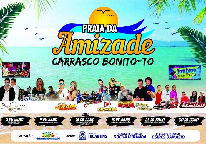 Com sua programação definida e licenças em dia, a Praia da Amizade, em Carrasco Bonito, uma das mais procuradas por moradores do Bico do Papagaio, será aberta oficialmente neste domingo, 2, com atrações musicais e uma vasta programação esportiva e cultural, durante a temporada, além de uma série de opções em alimentação e camping.