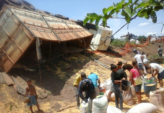Uma carreta, que transportava uma carga de milho, perdeu o controle e tombou na BR-010, no trecho entre as cidades de Açailândia e Itinga (MA). O acidente foi na tarde deste domingo (13), e deixou apenas danos materiais.