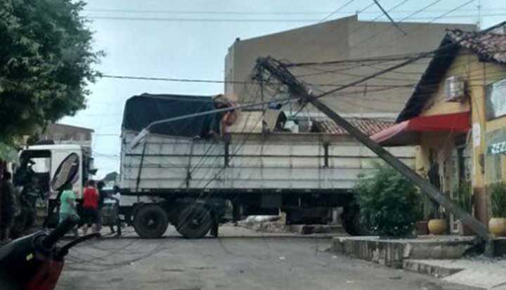 Após uma carreta danificar a fiação elétrica e quebrar poste no cruzamento das ruas São Francisco e Bom Futuro, no bairro Vila Lobão, na manhã desta quarta-feira (24), o fornecimento de energia foi suspenso no local desde então, e os moradores reclamam da situação.
