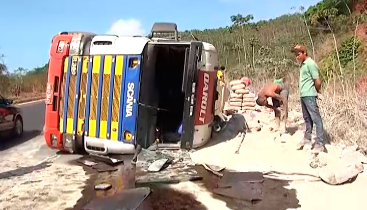 Nesta terça-feira (7), o motorista de uma carreta que transportava cimento do Estado do Goiás(GO) para o Pará (PA) teria perdido o controle na descida da Ladeira Vermelha, na BR-010, próximo ao município de Açailândia. Ele atravessou a pista e a carreta tombou.