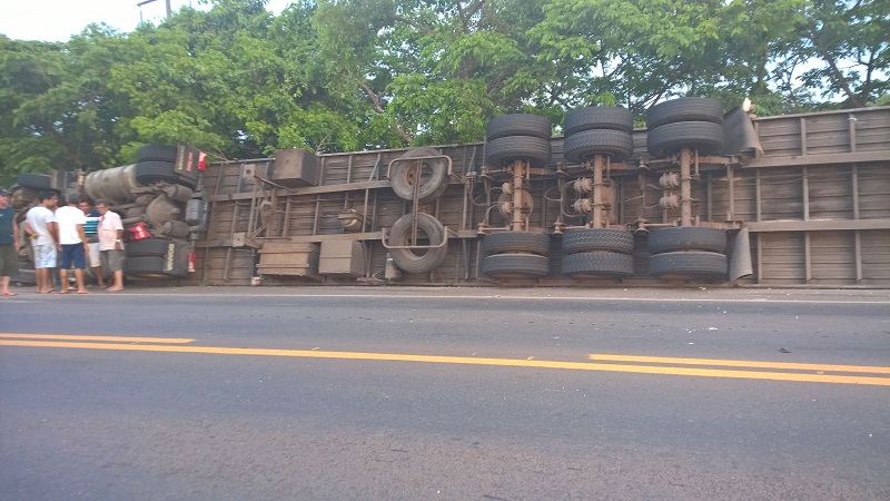 O trânsito, mesmo com o tombamento, não precisou ser interditado no trecho afetado pelo acidente.