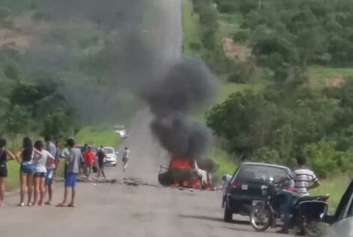 Uma pessoa morreu carbonizada e quatro ficaram feridas em um acidente na rodovia TO-110, entre Ponte Alta do Bom Jesus e Taguatinga, região sudeste do Tocantins. De acordo com a Polícia Civil, que esteve no local para fazer a perícia, um carro de passeio e uma caminhonete bateram de frente na tarde deste domingo (31). Os nomes das vítimas não foram divulgados.